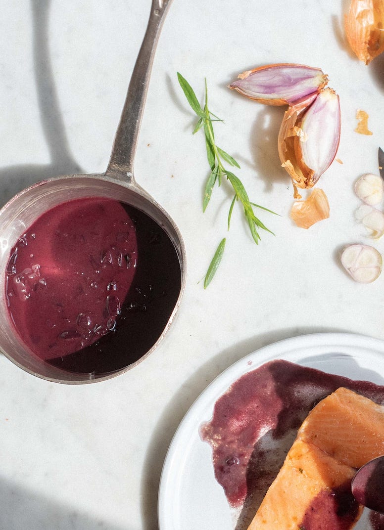 Strain through a fine sieve and keep warm. Serve over skirt steak, hanger steak, sautéed mushrooms, or roasted vegetables.